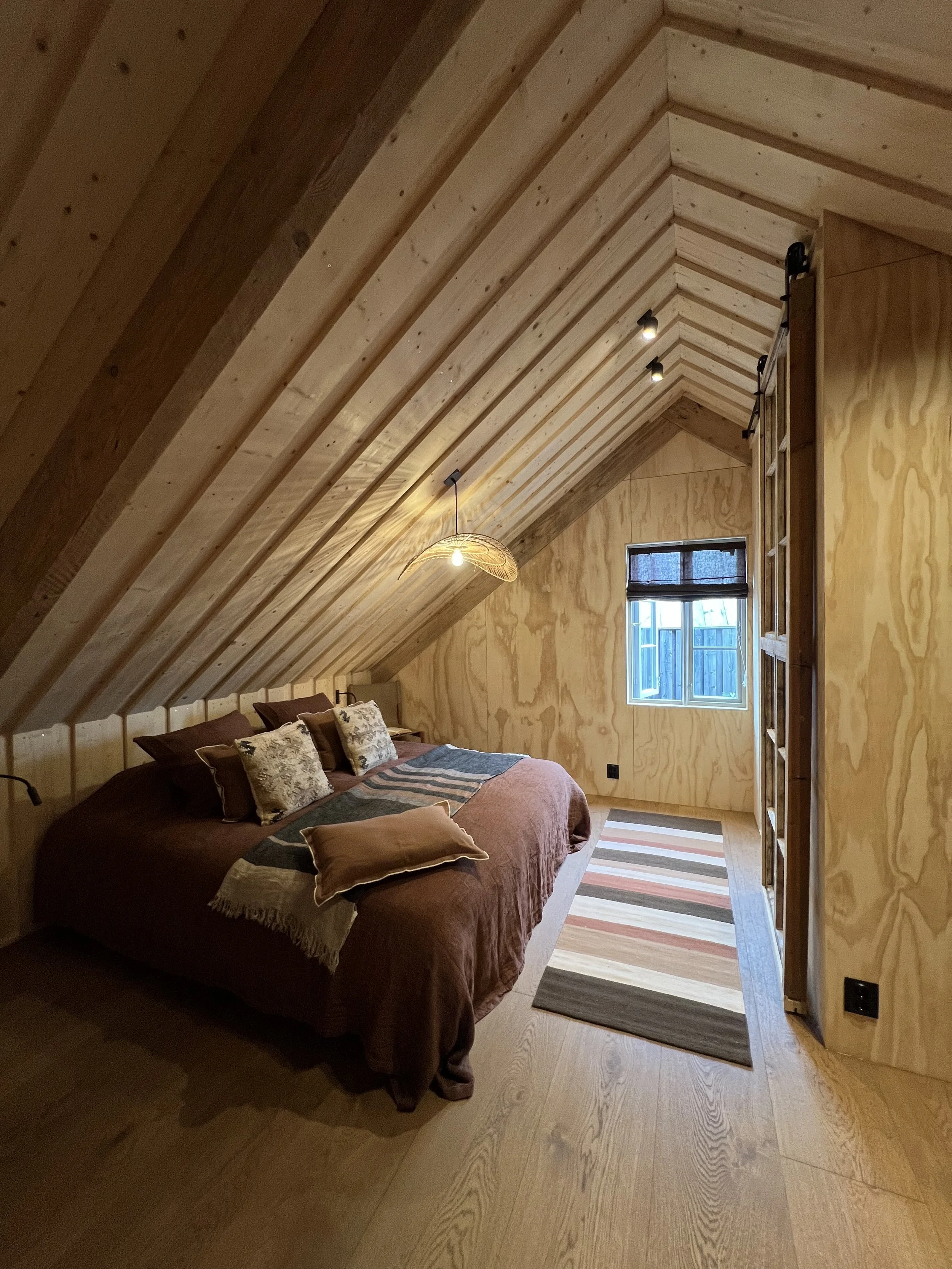To store en-suite soverom, begge med moderne bad (dusj, toalett og vask), King Size-senger og egne garderober